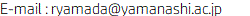 幹事:鍵山 善之 山梨大学 大学院 総合研究部 〒400-8511 山梨県甲府市武田4-3-11 TEL:055-220-8575, FAX:055-220-8575 ![]() 幹事:山田 隆一 山梨大学 大学院 総合研究部 〒400-8511 山梨県甲府市武田4-3-11 TEL:080-3492-6614 FAX:055-220-8779