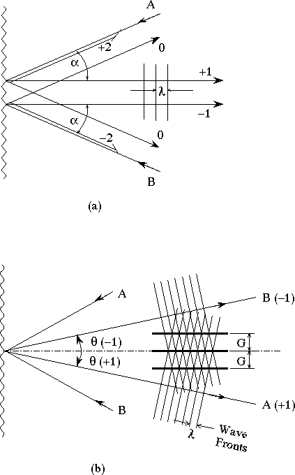 Ad, Bd はいずれも試料表面に平行な平面波となる.そのため回折光 Ad, Bd による干渉縞は生じない.しかし試料が変形すると回折格子の周波数