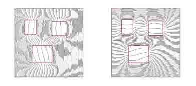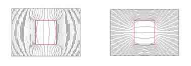 (1)パッケージ中央に単一チップが存在する場合: モアレ干渉縞は,チップを中心としてほぼ対称的に発生した.またチップでは粗の干渉縞,樹脂では密な干渉縞が生じた.すなわち熱膨張係数が小さいチップでは比較的に小さい変形が,一方,熱膨張係数の大きい樹脂においては大変形が発生した.変形はチップ周辺の樹脂,とくに角部で集中する可能性を示した.