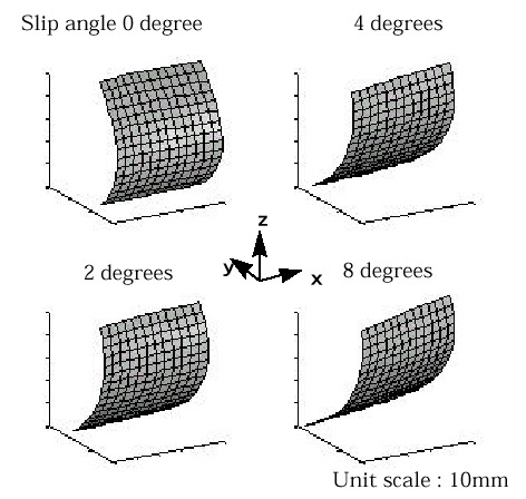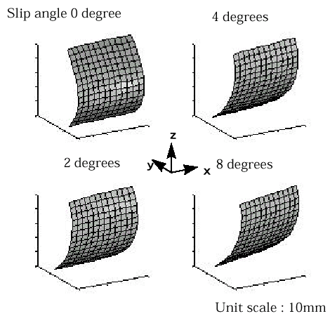 Fig.10 3-D sidewall shapes changing with slip angle (tire A)