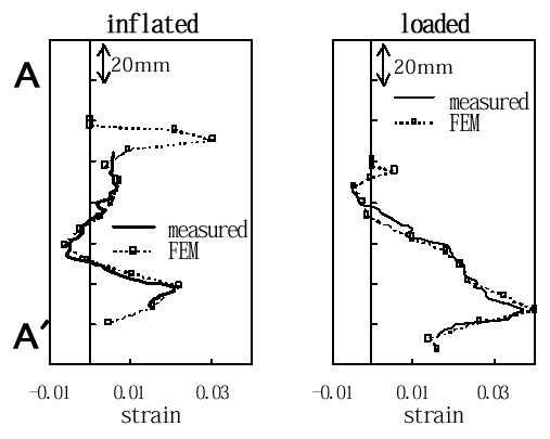 Fig.7 Z-directional Surface Strain at A-Asection