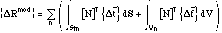 ハイブリッド解析領域を有限要素分割し,各力学量をベクトル表記すると次のように表すことができる.