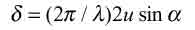 点の変形のx方向成分をu とし,2つの物体照明光の物体法線への角度を±αとすると,その間の位相差は