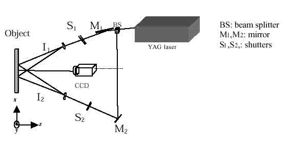 Fig.1 Experimental setup of ESPI which is sensitive to in-plane deformation